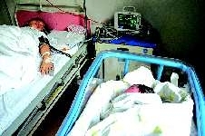 母亲徐女士来自芝罘区塔山社区,躺在孩子旁边的床上,她脸上时不时泛起幸福的笑脸,她连连说:“没想到孩子那么大。”