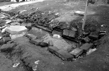 “一开始是从屋里地上冒出来的,根本就没法做生意,没办法,我们就用水管把漏水接到了屋外。”租用这间商铺的王先生告诉记者。在王先生的指引下记者看到,商铺正中央有一个已经用水泥填起的直径10厘米左右的圆洞。