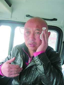 4月1日上午,记者见到了受伤卡车司机林先生,他左眼角附近的伤口还有血迹。“凌晨4点多我就从医院出来了,一直躺在车里,现在头也疼,眼睛也疼。”林先生说。