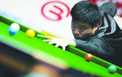 4月1日,在2011世界斯诺克中国公开赛四分之一决赛中,中国选手丁俊晖以5:2战胜英格兰选手斯蒂芬·李,晋级半决赛。 新华社记者 公磊 摄