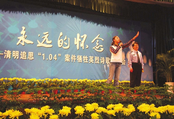 4月1日,“永远的怀念——清明追思‘1·04’案件牺牲英烈诗歌朗诵会在泰安市交警支队举行。公安民警、武警官兵、消防官兵等600余人通过诗歌缅怀英烈,表演的14首诗歌大部分都由民警自发创作,表达了对英烈的无限崇敬和哀思。