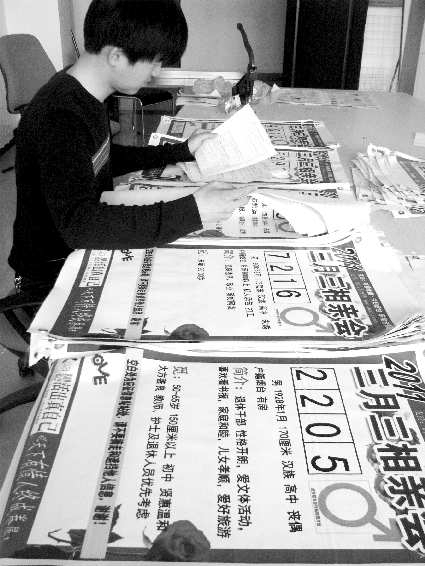 相亲会现场,报名者的基本信息和择偶标准要在展示卡上展现出来,30日下午报名截止后,本报工作人员就投入到紧张的工作中。每一个报名者的相关信息都要录入到展示卡模板中,性别、婚况、户籍所在地及择偶要求都将在相亲展示卡上展示。