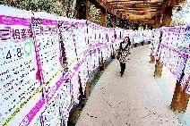 现场的相亲展示卡按照性别和年龄段进行分区排列,相亲者凭报名时的编号,很容易找到属于自己的展示卡。