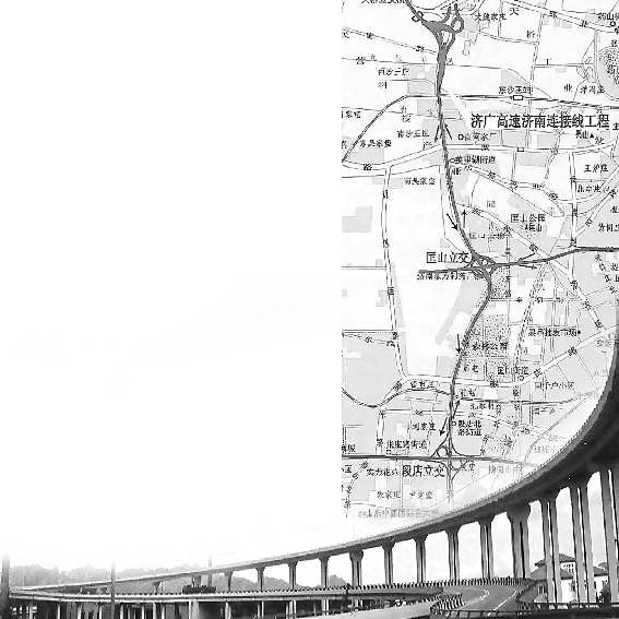 “济南至广州高速公路济南连接线”工程全长约10.25公里,主线二环西路高架桥起自济广高速现天桥立交处,止于段店立交北侧桥台处,与段店立交相接,设置匡山立交,并在济齐路、规划清河南路、张庄路北、张庄路南设置4对8条匝道桥连接地面道路,路线长约8.1公里。