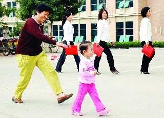 自述:看到大人们登台表演节目,小姑娘也忍不住要上,家长赶紧上前拽住她。