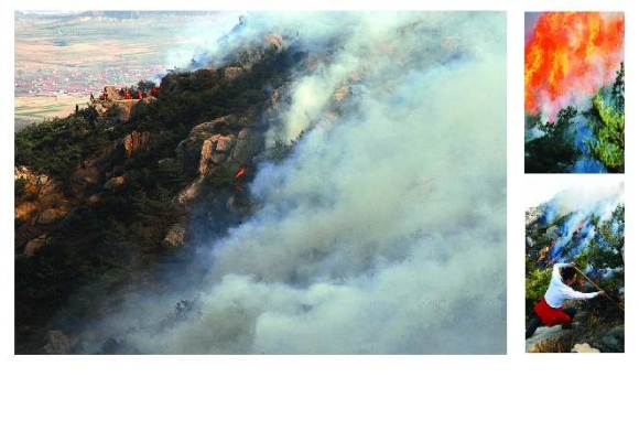 据日照市中医院在火灾现场的急救医护人员介绍,他们上午11点接到报警电话,就赶到河山脚下了,截止到下午6时没有人员伤亡。