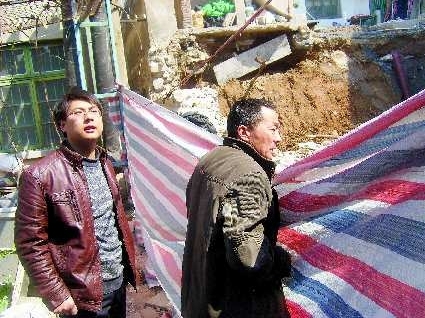 顺着一居民手指的方向,记者看到残存的院墙足有四五十公分厚,院墙外隔开20厘米左右才是隔壁邻居的院墙。