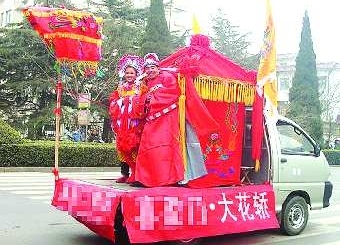 自述:某婚庆公司在街头做传统婚礼的广告宣传。