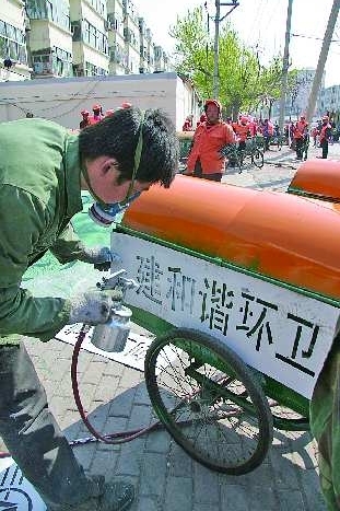 记者在德州市环卫处获悉,为创建国家卫生城市,4月3日起,市环卫处组织专人全面维修维护各类环卫车辆,陆续对500余辆保洁车、60辆电动三轮收集车、20余辆人力车和30余辆机动三轮车进行打磨、修理、喷漆,计划4月20日前让环卫车辆换新颜。