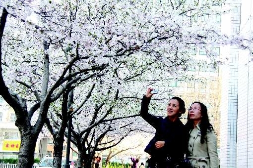 5日,广通路两旁盛开的樱花惹来不少市民前来观赏。漫游樱花林,朵朵樱花相互簇拥、争相怒放,婀娜多姿尽收眼底。