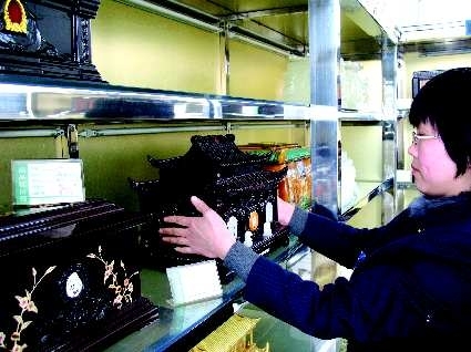 市殡仪馆副主任沈涛云指着一款标价416元的“唐陵”骨灰盒说,这款骨灰盒当时是360元进的,但是其做工和用材连标价260元的都赶不上。像这样的库存还有不少,现在只能通过与供货商协商或者自己赔本消化掉。