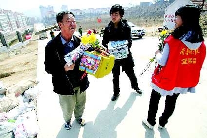 除了殡仪馆,赠送鲜花的地点还有另外4处。随后,记者又来到了西山,此处是山林防火的重中之重,世回尧办事处的几名工作人员在早上4点半就来到了山上,记者沿途看到了不少横幅,几乎全部是关于山林防火的警示。“我们是齐鲁晚报的环保志愿者,请您不要带火种上山。”三三两两的市民提着铁锨和祭品同时又得到了本报的鲜花和报纸,大家纷纷点头答应着志愿者的提醒。