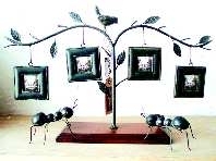 在墙上制作相片树正在慢慢流行,如果害怕麻烦又想紧跟潮流,不妨选择这样的铁艺相框树摆件。黑色铁艺本身就是复古元素,原色木质底座也带着厚重感。如果你不喜欢这4个方正造型的相框,也可以换成更像果实的椭圆形或其它形状。