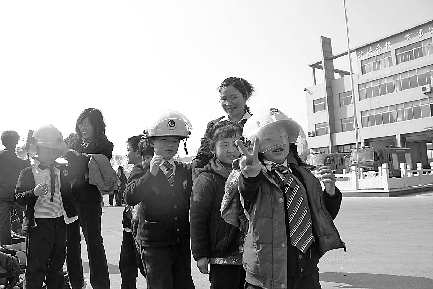 近日,来到济宁市高新区消防大队参观的小学生戴上消防头盔,高兴地对着镜头摆起了pose。济宁外国语学校的200余名小学生在高新区消防大队参观,学习消防知识,在消防战士的帮助下,他们试穿了战斗服,戴上消防头盔,过了一把“消防瘾”。