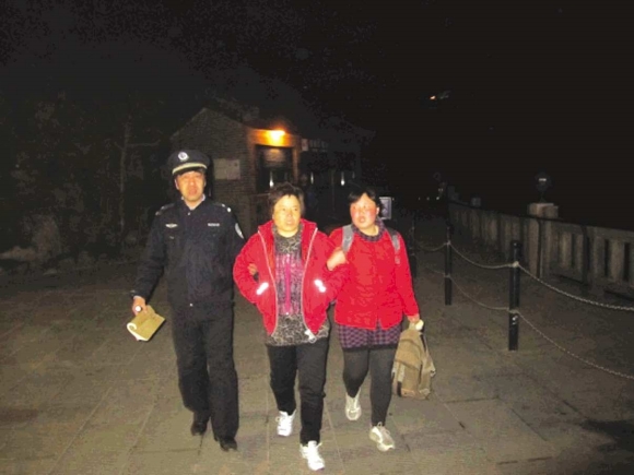 本报泰安4月5日讯(记者陈新 通讯员 赵伟 贺玉玉)4日,一莱芜女游客在泰山顶上突发急性阑尾炎,岱顶派出所民警联系已经停运的中天门索道管理人员,将游客送下山。