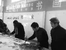 在兰山区文联、美协在义堂中学举办书画联谊会上,张荣德、杜相海等20多名书画家挥毫泼墨,共创作近百幅书画作品,数百名师生近距离感受了书画艺术的魅力。记者 王健 摄