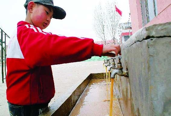 走进平邑县铜石镇中心校,正值课间休息,教学楼前的水管旁,有三三两两的学生在洗手。但水管里流出的不是清水,而是浑浊的“黄河水”。