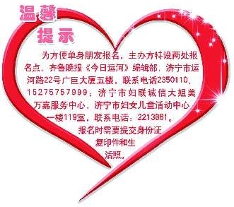 去年11月6日,由本报等单位主办的“相约金秋”大型相亲会上,近千名单身男女前来寻觅良缘。如果您曾经参与,并在此次相亲会上遇到了他(她),由相识、相知到相恋,我们希望您能将自己的相亲故事告诉我们,或者将您和恋人的照片提供给我们,我们将在今年“牵手春天”大型相亲会的报名过程中,陆续刊登朋友们提供的相亲故事。