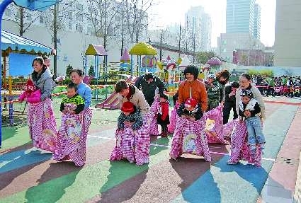 近日,新营小学幼儿园老师根据孩子的年龄特点,精心设置了各种丰富多彩的亲子趣味游戏,小朋友们跟家长玩得不亦乐乎。