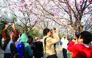 阳春三月,北京玉渊潭公园的樱花盛开,引来大批游客前来赏花拍照。花开一时,美丽永存。