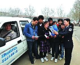 7日上午,交警支队车管所宣传科科长李百强、“百姓喜爱的泉城女警”候选人郭防与市交通局驾培处工作人员一起走进中建驾校,参加其交通安全知识培训开课典礼,为学员讲解交通安全常识和车管知识。 (车管宣)