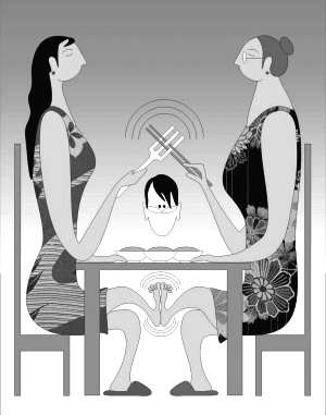 对于一个男人来说,母亲生养了他,并陪他走完人生的第一程,是比天还高的恩情;而妻子,虽然没给他生命,却为他生儿育女,让他的生命得以延续,并与他携手走完人生的后半程,妻子对他而言,不只有爱情,也有恩情,不管是母亲的恩情还是妻子的爱情,不是对立的,都是人间至真至美至纯的感情,一个幸福的男人应该同时拥有这两种感情的。可是,为什么作为婆婆的女人,要排斥媳妇对儿子的爱,要将媳妇改造成比儿子卑微的人,要媳妇仰视自己的儿子,要将媳妇对儿子的爱变为奴隶对主人的敬畏,而不是让他们成为相互尊重和爱慕的伴侣呢?