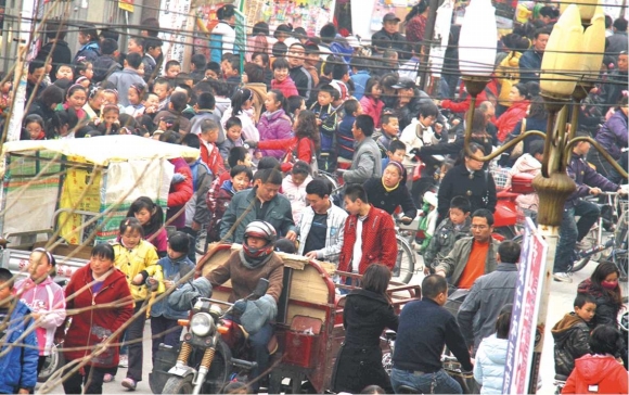 7日中午放学了,育新街新区小学附近人车混行,堵得难行。