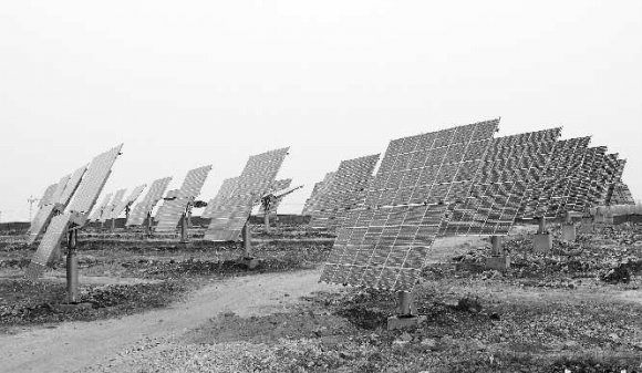 由临沂市区驾车沿新327国道一路向西行驶,快到达平邑县城时,你会在327国道北侧的一段荒坡上,看到巨大的排列整齐的太阳能跟踪器,很多人都会对这新事物感到奇怪,纷纷停车驻足观看———这就是临沂市首座安装追踪系统的聚光光伏电站,至2012年项目完全竣工后,这里将成为全国最大的安装追踪系统的聚光光伏电站。