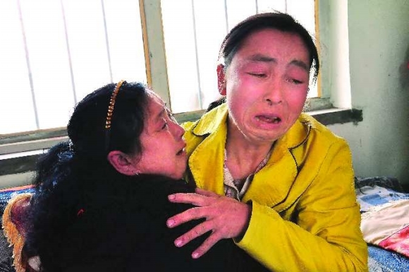 8日,来自吉林榆树市的母亲赵英彩,终于在夏津县田庄乡西郑庄见到了失散22年的女儿任晓玲(右)。图为久别重逢的母女二人相拥在一起泣不成声。 本报记者 苏超 董传同 摄