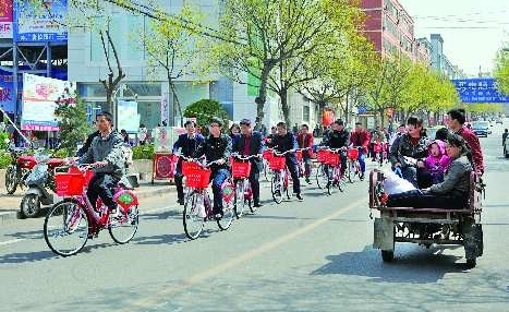 本报4月8日讯(记者 任志方 通讯员 赵军) 4月8日上午,平阴县32个县级机关事业单位从县城文化广场领走了共300辆公共自行车,由此迈出了平阴县“绿色出行、低碳办公”的第一步。据了解,平阴是省内第一个推行短途公务出行用自行车代步的县。