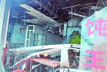 “南边是快餐店,中间是卖电器的,北边是蒸饺店。”三家店铺的房东魏先生面色凝重:原本用木料、石膏板做墙隔开的三家店铺,如今被“通”成一家,就连屋顶的天花板也整片掉落。