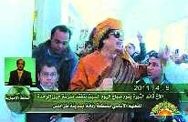 电视镜头里的卡扎菲身穿棕色传统服装,戴着墨镜并面带微笑,在保镖的簇拥下进入学校。在视察中,卡扎菲走进教室与师生进行了面对面的交流,并不时挥动拳头,称北约空袭是“恐怖主义行径,让学生们受到了惊吓”。此外,他还授予学校学生、教师和工作人员“勇敢勋章”,号召民众将“侵略者”赶走。卡扎菲受到支持者欢迎,一些妇女当场流泪,学生高喊反西方口号。