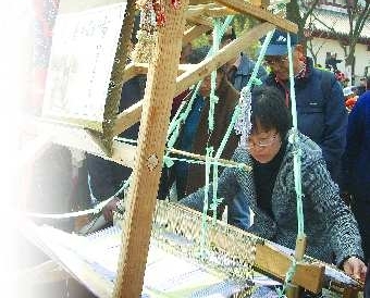 “这种传统织布机已经多年没见了。”在千佛山庙会上,来自章丘的孙圣奎夫妇面前摆放了一台传统织布机,边织布边售卖粗布制品,吸引了不少游客围观购买。另外,商河的“将够本”、济南的锅盔、兔儿爷,虽然在庙会上只有几家,但生意格外好。