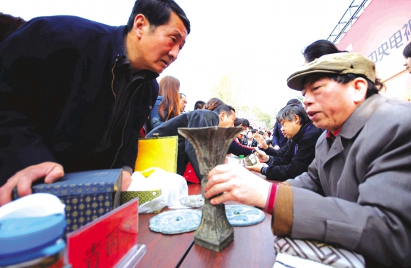 记者看到,不少市民的“宝贝”被专家捧在手里爱不释手,并开出了进入复选的门票。但是有些“宝贝”刚拿出来,专家只看了一眼便被告知是“新品”或者是“赝品”,宝贝持有者或喜或忧地离开了现场。