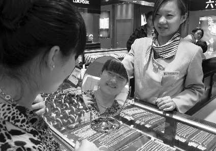 4月10日,在市区一家金店内,市民在选购黄金饰品。据了解,受国际金价走高的影响,枣庄千足金的价格也开始走高,其中老凤祥千足金的价格由9日的379元/克涨至389元/克,创历史新高。