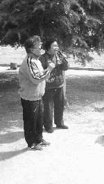 4月10日上午,记者在松树林里采访了唱豫剧的王女士。王女士告诉记者,他们自从退休后就来这里唱曲,已经有10年了。在这10年当中,队伍不断壮大,现在已经有四五十人了。