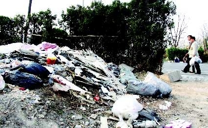 13日,在福寿街与四平路路口西侧,一片绿化带“身后”堆放了大量的生活垃圾。附近居民介绍,此处乱倒垃圾的现象时常出现,虽然有过集中清理,但仍然难以杜绝乱倒行为。 本报记者 吴凡 摄影报道