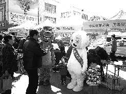 最近,龙口市体彩办利用节假日在龙鼎商厦门前举行中国体育彩票“顶呱刮”大回馈活动,特别邀请喜洋洋和灰太狼来现场助阵,和市民拍照、玩耍。活动现场,凡是购买“顶呱刮”即开彩票满三十元或是单张彩票中奖满五十元的市民,均可以免费与卡通玩偶“喜洋洋”和“灰太狼”合影留念,没带相机不要紧,工作人员会无偿帮您把照片洗好。(叶子)