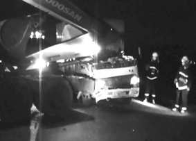 本报4月13日讯(记者 曹宏源) 10日凌晨3点半,在天衢西路化肥厂附近发生了一起车祸:一辆厢式货车夜色中撞到了停在路旁的挖掘机机臂上。