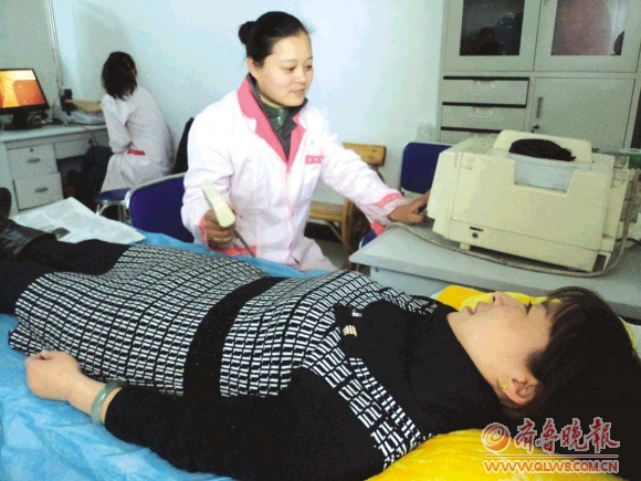 18日,在财源街道办事处中七里社区,1167名已婚育龄妇女开始进行。图为一女士正在查体。