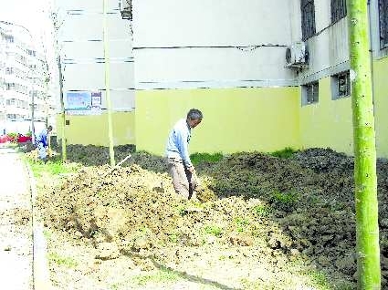 18日下午,记者在市区苗庄小区兰苗园后面看到,4名施工人员正在开挖沟渠,他们告诉记者这是在改造小区供水主管道。