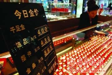 记者了解到,目前中国黄金的金条价格为338元/克,而周大福、六福等的金条价格为395元/克,价格均有所上涨,相比起首饰类黄金销量来说,多家品牌专柜投资类黄金销售情况一般,“许多市民对投资类黄金表现出了很大的兴趣,但观望的市民也不少。”鑫意首饰史延平说。