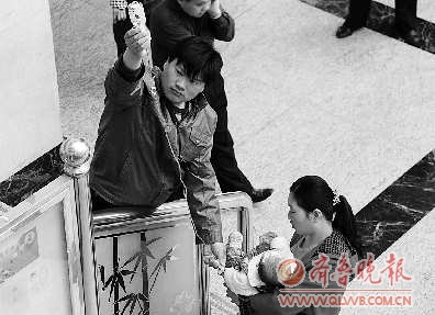 4月18日,德州市人民医院输液室内挤满了就诊的市民,一对年轻的父母站在输液室外的楼梯上举着吊瓶陪孩子输液。近日,忽高忽低的气温让患呼吸道疾病、心脑血管疾病、腹泻疾病的人数明显增多,其中以婴幼儿和老人为主。
