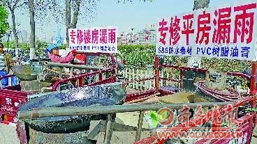 近日,在济南街头,专修房屋漏雨的施工队正在等活。眼下多雨的季节还未到,防漏雨的施工队们就开始忙碌起来了。