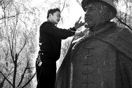4月19日,临沂人民公园管理处组织人员对临沂人民广场上的诸葛亮、颜真卿等10大名人雕塑进行了清刷。