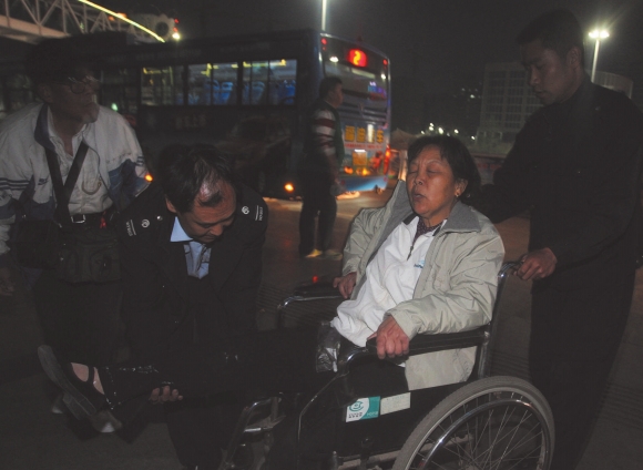 昨晚,2路公交车将湖南游客邵南方、秦晓娥夫妇送到潍坊火车站。本报记者 孙国祥 摄