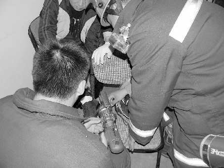 4月19日上午10时,在烟台市开发区法院,一嫌疑犯所带的脚铐,因钥匙断在脚铐里无法打开。消防七中队赶到现场后,用钢筋速断器进行破拆,脚铐最终被“请”了下来。