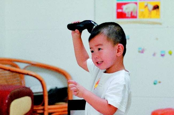 作品描述:儿子一直觉得爸爸的剃须刀很神奇,黑黑的胡子一会儿就能被弄干净,于是他一直想试试。那天,剃须刀终于被儿子如愿以偿弄到手了,可是没胡子怎么办呢?急中生智,就拿头发代替吧!