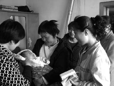 近日,广饶县丁庄镇计生服务人员专程来到丁庄村一村民家中,对新生儿进行随访,指导科学养护新生儿。为了使全镇新生儿童更加健康成长,该镇计生服务人员深入到全镇育龄妇女家中进行随访,利用6天时间走访400户新生儿家庭。 本报见习记者 王超 本报通讯员 刘燕华 摄影报道