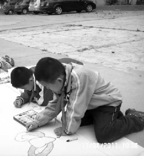 锦华小学的徐老师介绍说:“这次去爱心园是我们家委会的会长联系的,去了好几次了解情况,我们班的家长都很团结,真的很感谢我们班的家长。爱心园里面大都是智障的孩子,最小的有3岁,最大的有30多岁,他们那里设施较为简陋,我们的工具比如面板、铁锹都是自己带去的。”